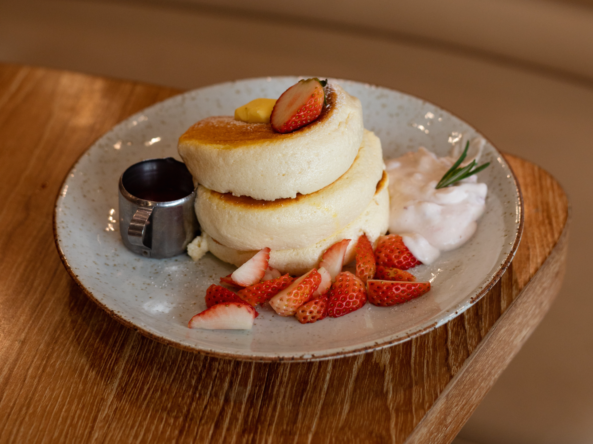 수플레팬케이크는 계란 흰자와 설탕을 거품 내어 녹인 버터와 밀가루를 섞어 만든 반죽으로, 공기를 많이 포함하여 부풀어 올라가는 것이 특징입니다. 부드럽고 촉촉한 질감과 바삭하고 달콤한 향이 일품인 팬케이크로, 먹기 편하고 느끼하지 않기 때문에 좋아하는 사람들이 많습니다. 더 부드러운 질감을 위해 식물성 크림이나 유제품을 사용하여 만들어지기도 하며, 구운 팬케이크 위에 생크림, 과일, 시럽 등의 토핑을 얹어 먹습니다. 수플레팬케이크는 일반 팬케이크와 달리 계란 흰자의 거품을 녹인 버터와 설탕에 반죽으로 섞어 구워 만듭니다. 이때 계란 흰자의 거품이 반죽에 섞이면서 일정한 높이가 생기면서 부풀어 오릅니다. 수플레가 조리 중 잘 부풀거나 꺼지지 않게 유지하기 위해서는 재료의 성질과 조리과정에서 거품을 유지하거나 굽는 방법 등 기술적인 실력을 필요로 합니다. 일반적인 팬케이크보다 살짝 복잡한 과정으로 만들어지기 때문에 프로처럼 만드는 것은 쉽지 않지만, 요즘에는 집에서도 충분히 어렵지 않고 감성적인 홈브런치를 만들기에 좋은 음식 중 하나입니다.